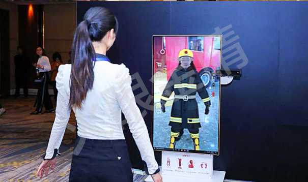 多采用體感交互與虛擬現(xiàn)實互動技術,可利用觀眾肢體動作與虛擬畫面人物進行互動交互,進行各種消防服、防化服、防輻射服的穿戴體驗,另外可拍照打印。通過虛擬穿衣,了解消防公安裝備。