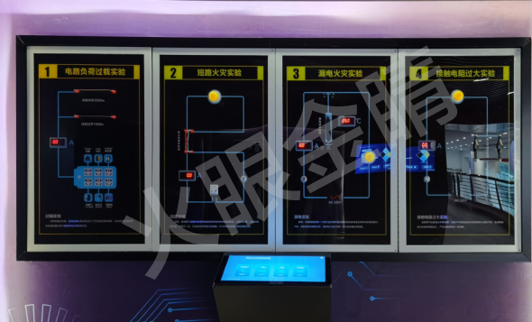 模擬電氣火災成因?qū)嶒炁_V2.0將超負荷、短路、漏電、接觸電阻過大四項實驗分開展示,每套實驗臺可自由搭配,適應了不同客戶的需求。用戶可以通過操作一體機實現(xiàn)負載的增加、電線的短路等現(xiàn)象,既保證實驗安全,又能直觀感受實驗現(xiàn)象。結(jié)合軟件的原理視頻講解,更加深入了解電器類火災的成因,從而更加科學合理的避險類似災害發(fā)生。