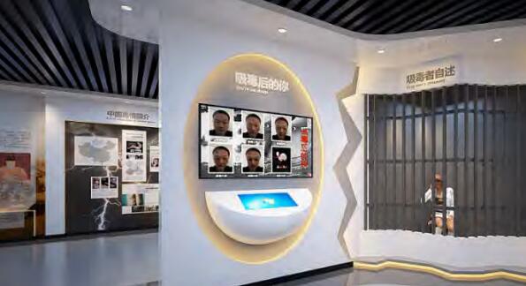 展品主要由觸摸屏、攝像頭、顯示器及主機(jī)等組成,觀眾首先在帶有攝像頭的觸摸屏前進(jìn)行拍攝,留下“未吸毒”的樣貌。然后根據(jù)觸摸屏畫面提示選擇吸毒年份,觀看對應(yīng)的容貌變化。